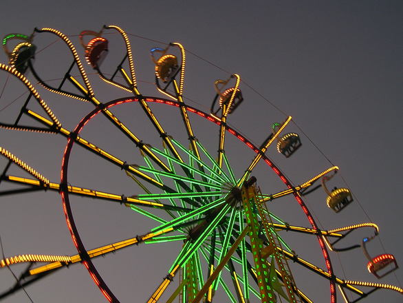 The original Ferris Wheel was designed and constructed by George Washington Gale Ferris Jr. as a landmark for the 1893 World's Columbian Exposition in Chicago. The generic term Ferris wheel is now used for all such structures, which have become the most common type of amusement ride at state fairs in the United States.