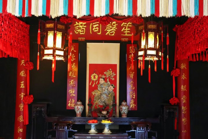Following our exploration of the Ancient Bed Museum, our journey through Wuzhen Water Town continues with a visit to the captivating Folk Custom Museum. Stepping inside, we are transported into the heart of local traditions and ceremonies, where scenes of weddings, birthday celebrations, and funerals come to life.As we wander through the museum's halls, we are treated to a vivid portrayal of Wuzhen's vibrant cultural tapestry. In the costume hall, exquisite ceremonial dresses take center stage, each one a masterpiece of craftsmanship and artistry. From intricate embroidery to dazzling embellishments, these garments offer a window into the rich heritage of the region.Led by our knowledgeable guide, we delve deeper into the significance of these cultural artifacts, uncovering the stories and traditions that have been passed down through generations. Through their expert commentary, we gain a deeper appreciation for the customs and rituals that define life in Wuzhen.